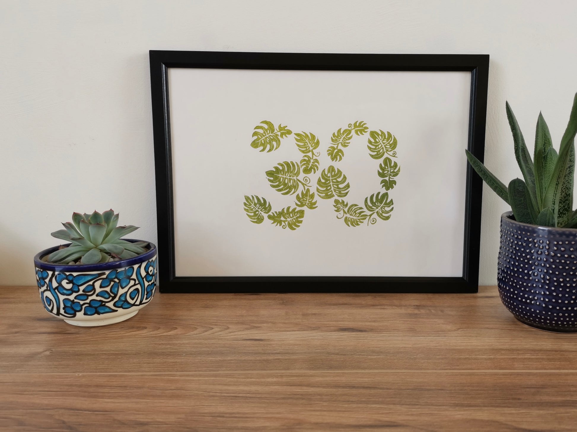 It is an original Lino cut print designed and hand printed by us. A unique print for the house plant addict in your life.