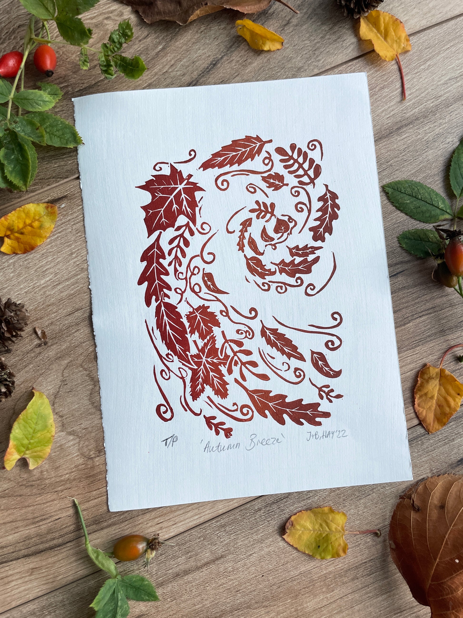 Printed using my hand press, it’s perfect for those autumn loving folk.