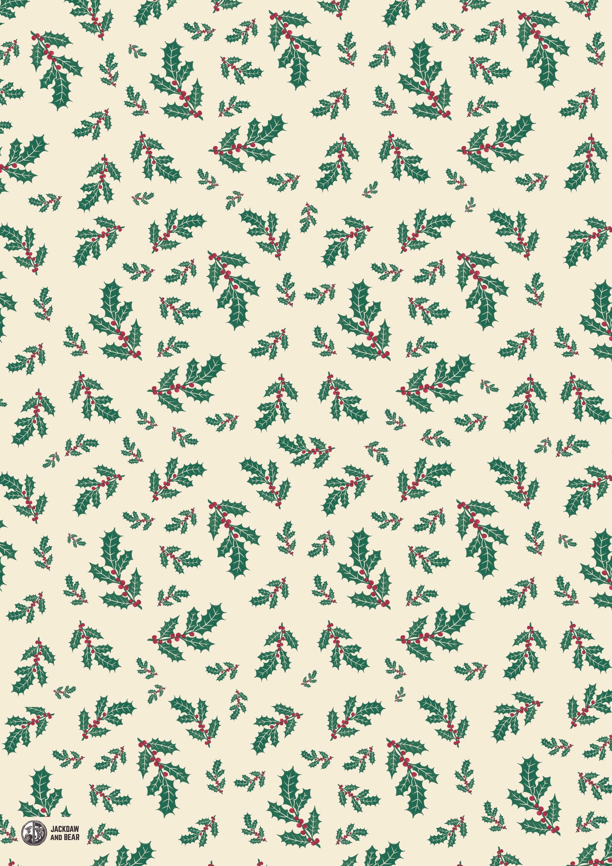 Our Classic Cream Holly & Berries Wrapping Paper features illustrated holly sprigs arranged in a soft repeat pattern on a warm cream background. Beautifully printed in the UK with a matte finish, this sheet is thin enough to wrap neatly and thick enough to keep presents fully hidden. A perfect choice for Christmas gifting with a traditional feel.