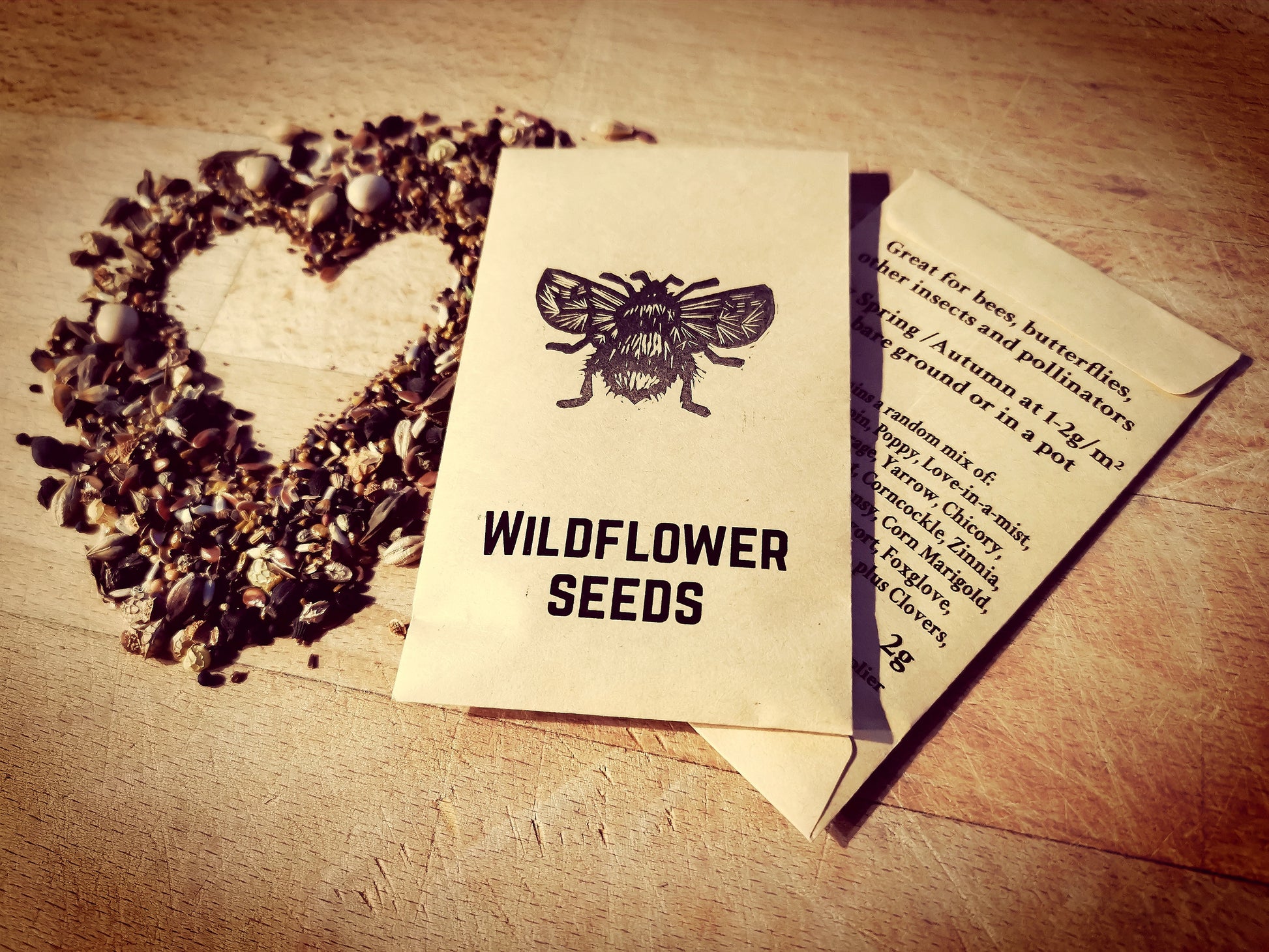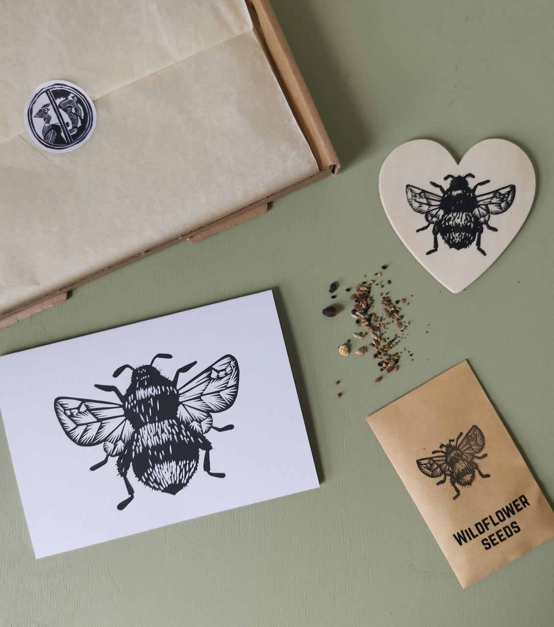 Pollinator friendly seeds, sow spring - autumn at 1-2g/m2 on bare ground or in a pot. Simply scatter the seeds, water and wait for the beautiful flowers! - Bumblebee lino card