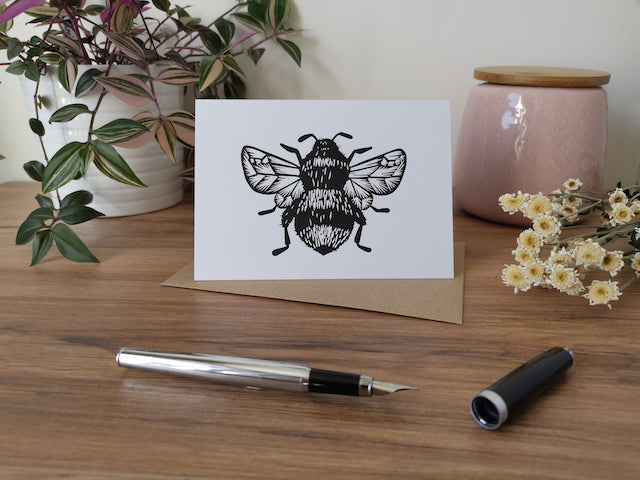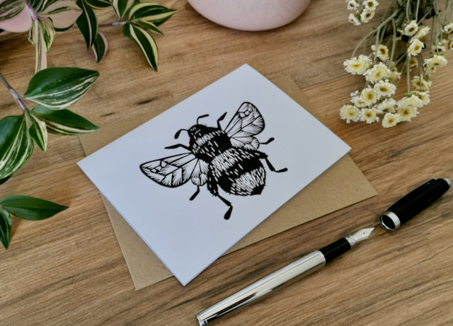 Bumblebee, bee greeting card, Lino cut print blank card, birthday card, thank you card