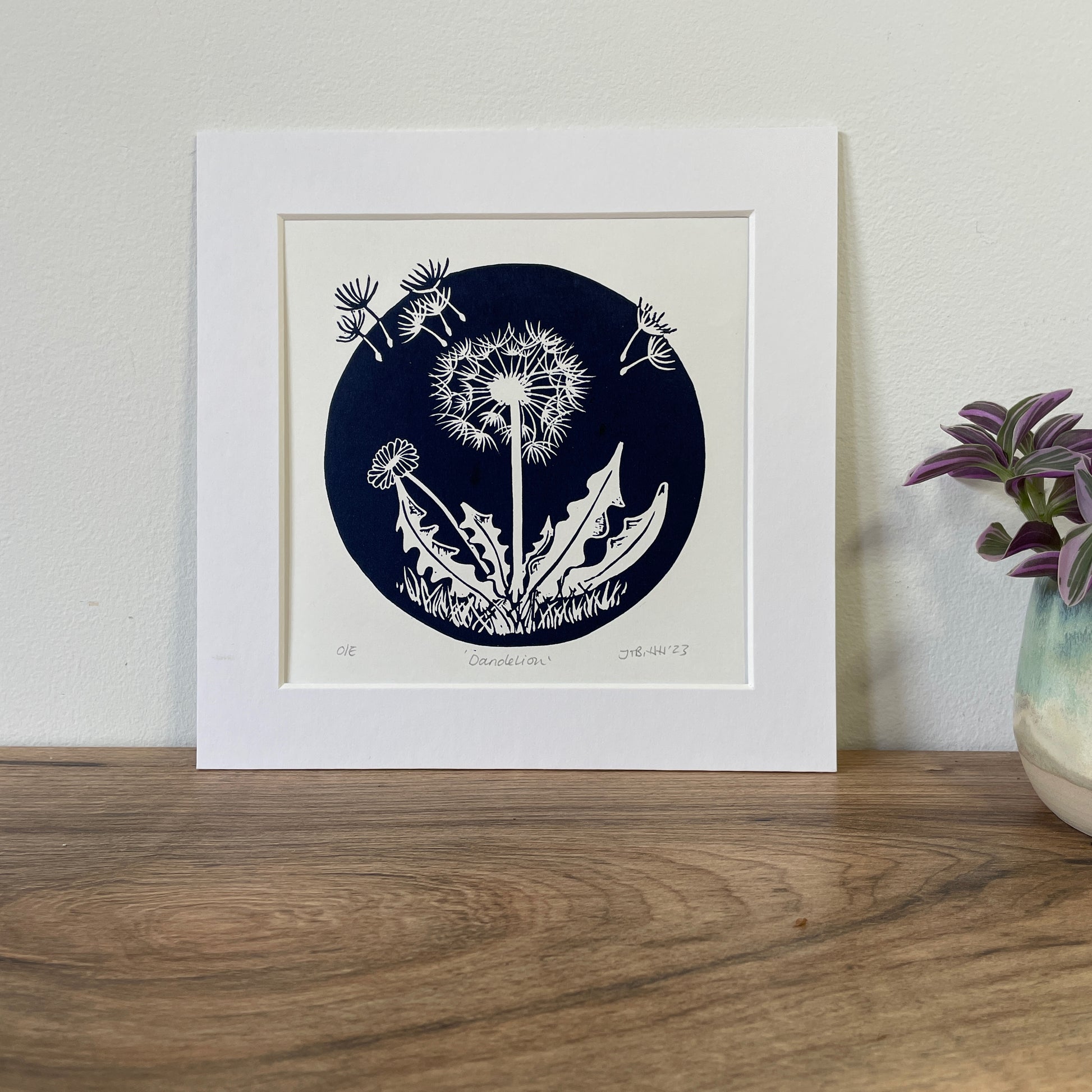 Dandelion hand printed Linocut art print