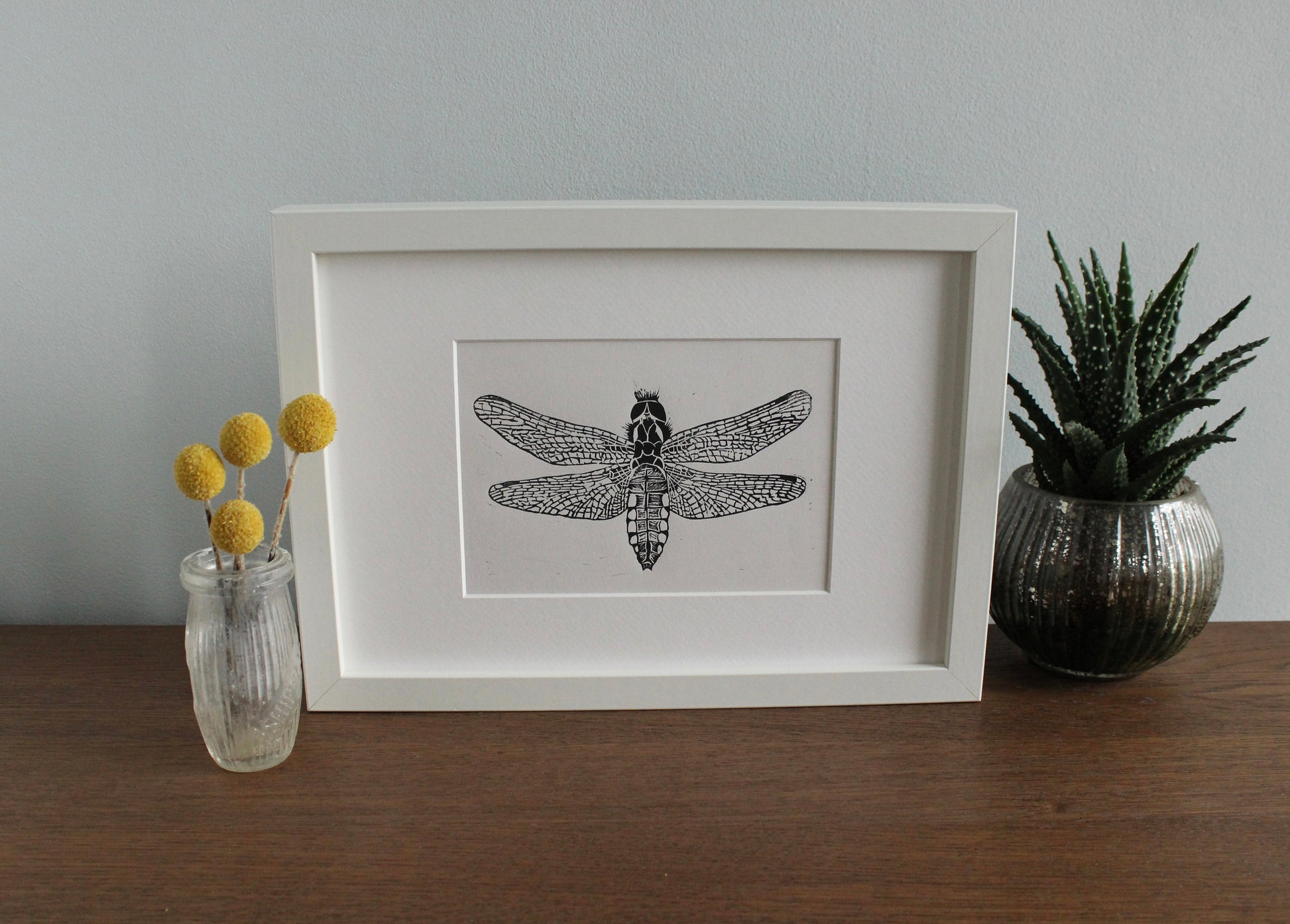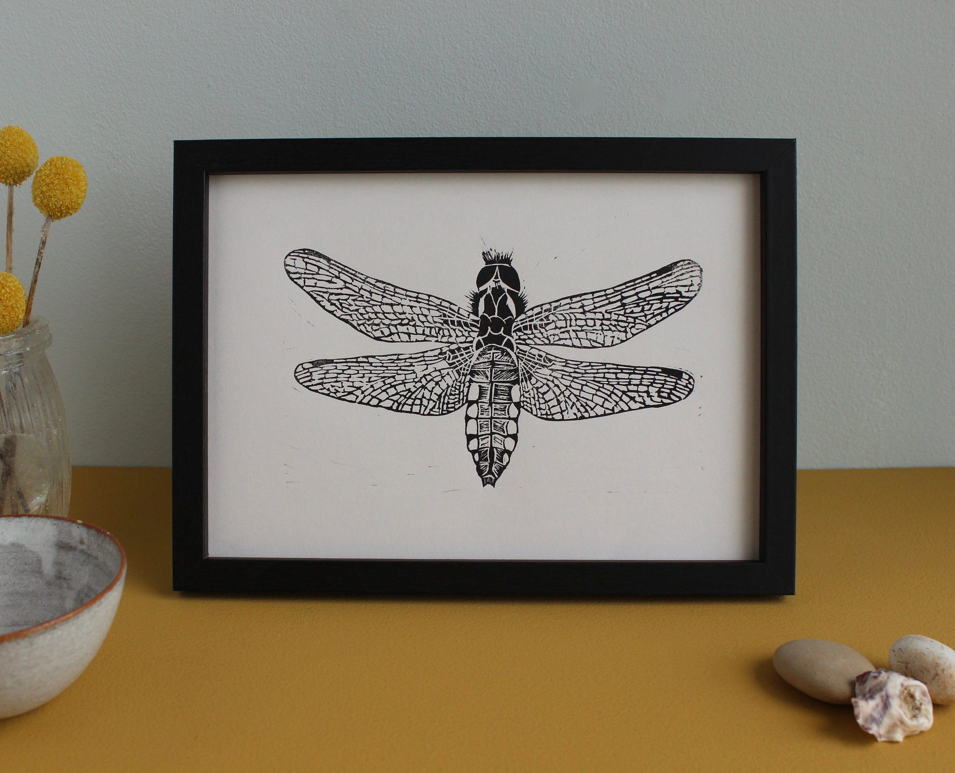 This intricate dragonfly print, printed by hand is a perfect gift for a nature or wildlife lovers home or office.