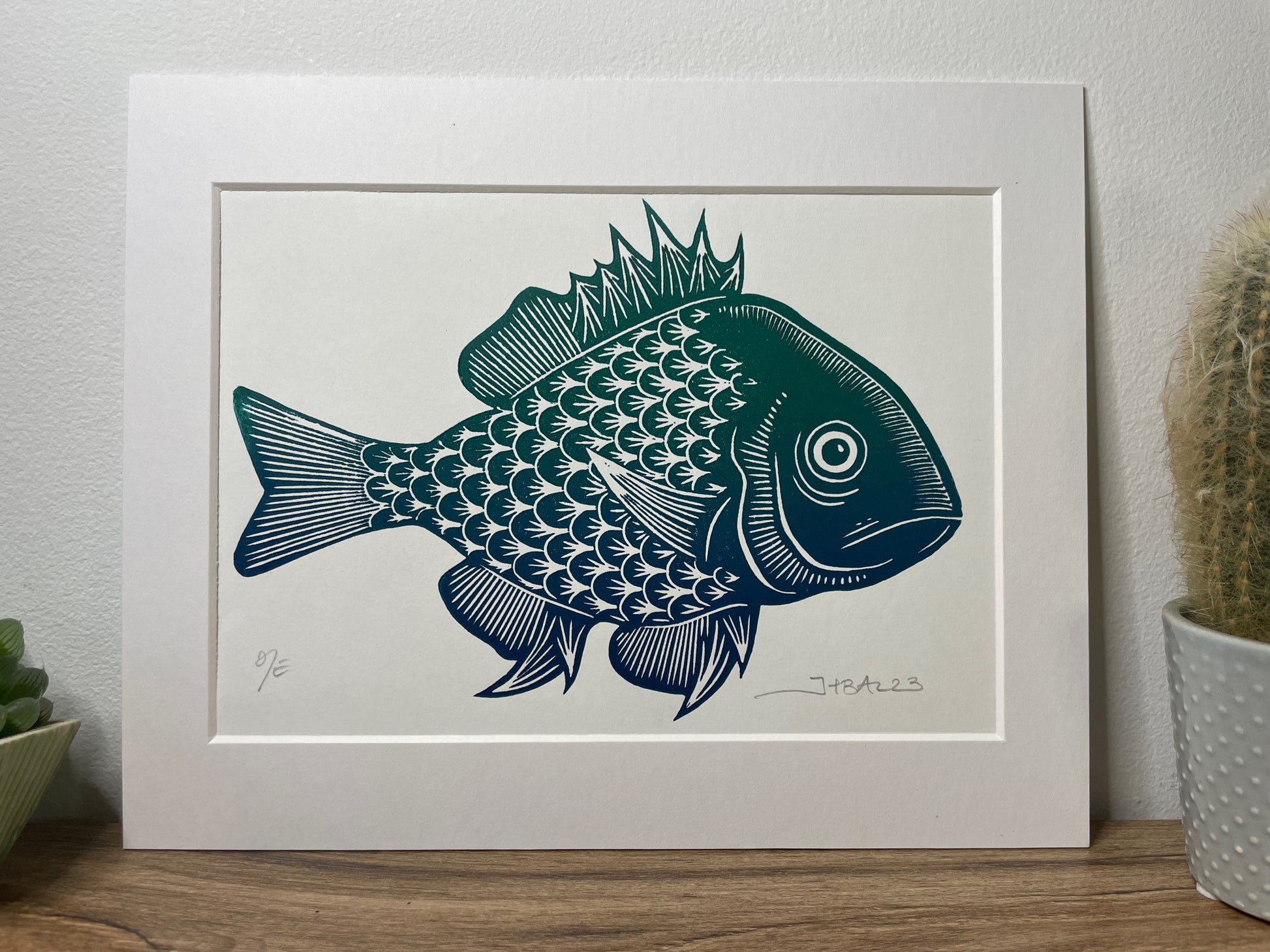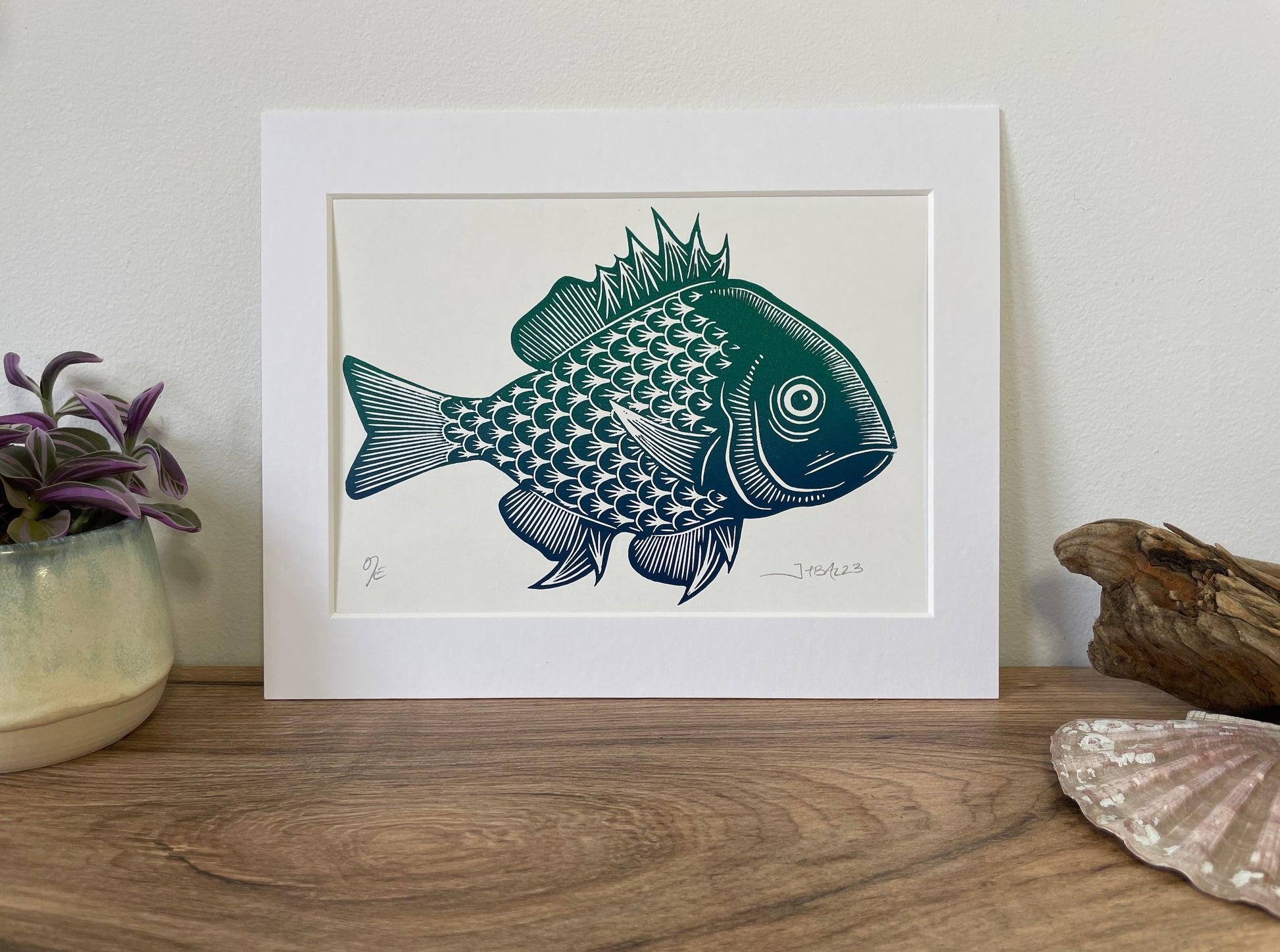 We design and create all pieces by first hand drawing the design onto Lino, and then we hand carve the Lino. Next, ink is hand rolled on to the Lino plates, finally the design is ready to be pressed on to the card or paper using a hand barren.