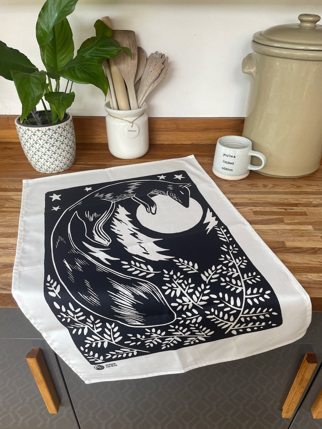Don't overlook our 100% cotton Fox Tea Towel with a folksy flair! This delightful towel is ideal for sprucing up your kitchen or as a thoughtful housewarming present.
