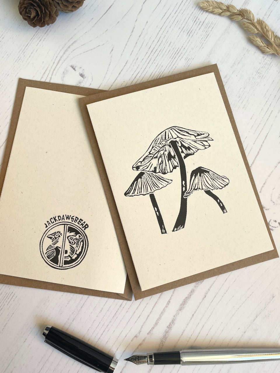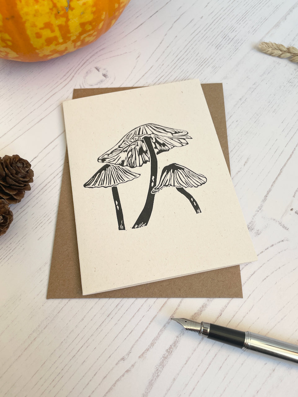 Inspired by spotting seasonal British mushrooms, we've created this toadstool nature greeting card from our original linocut print, it is perfect for fungi foragers and mushroom fanatics.