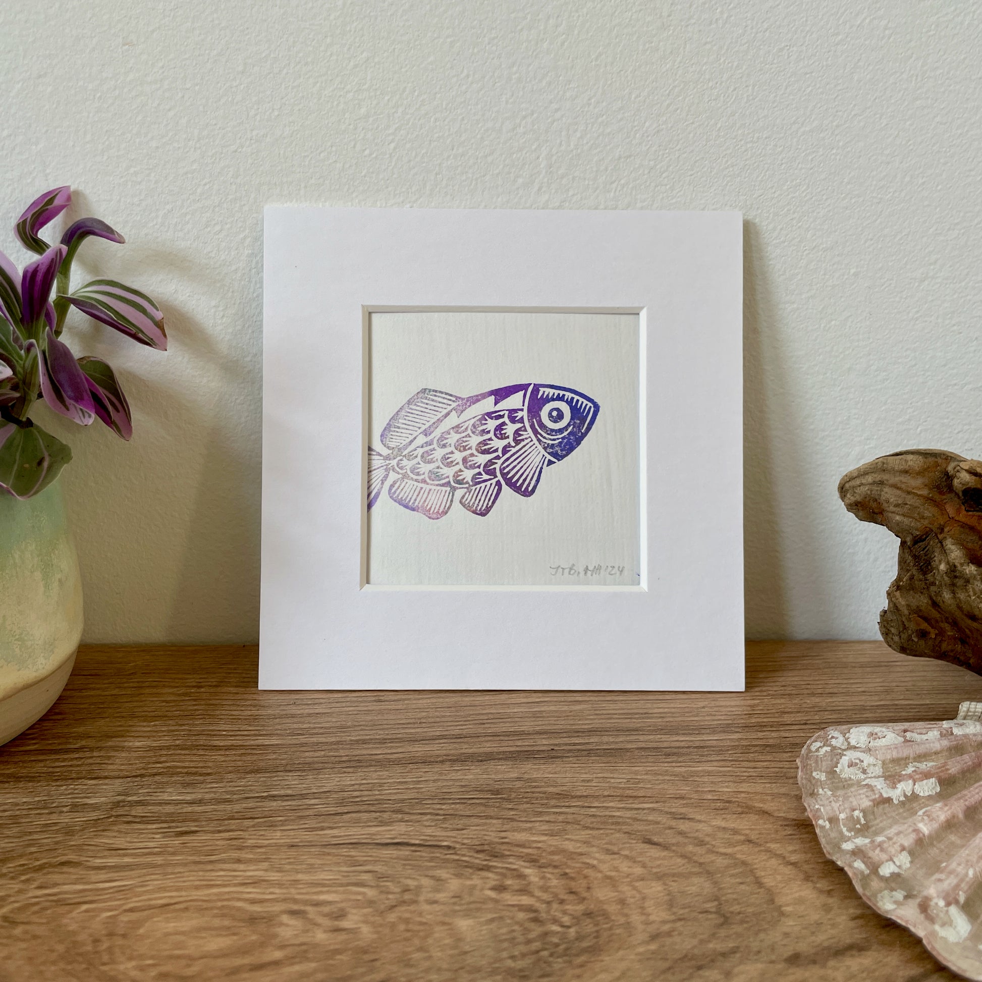 This Fish mini print is a hand-printed, original linocut print created in our Kent studio as part of our growing series of mini prints.