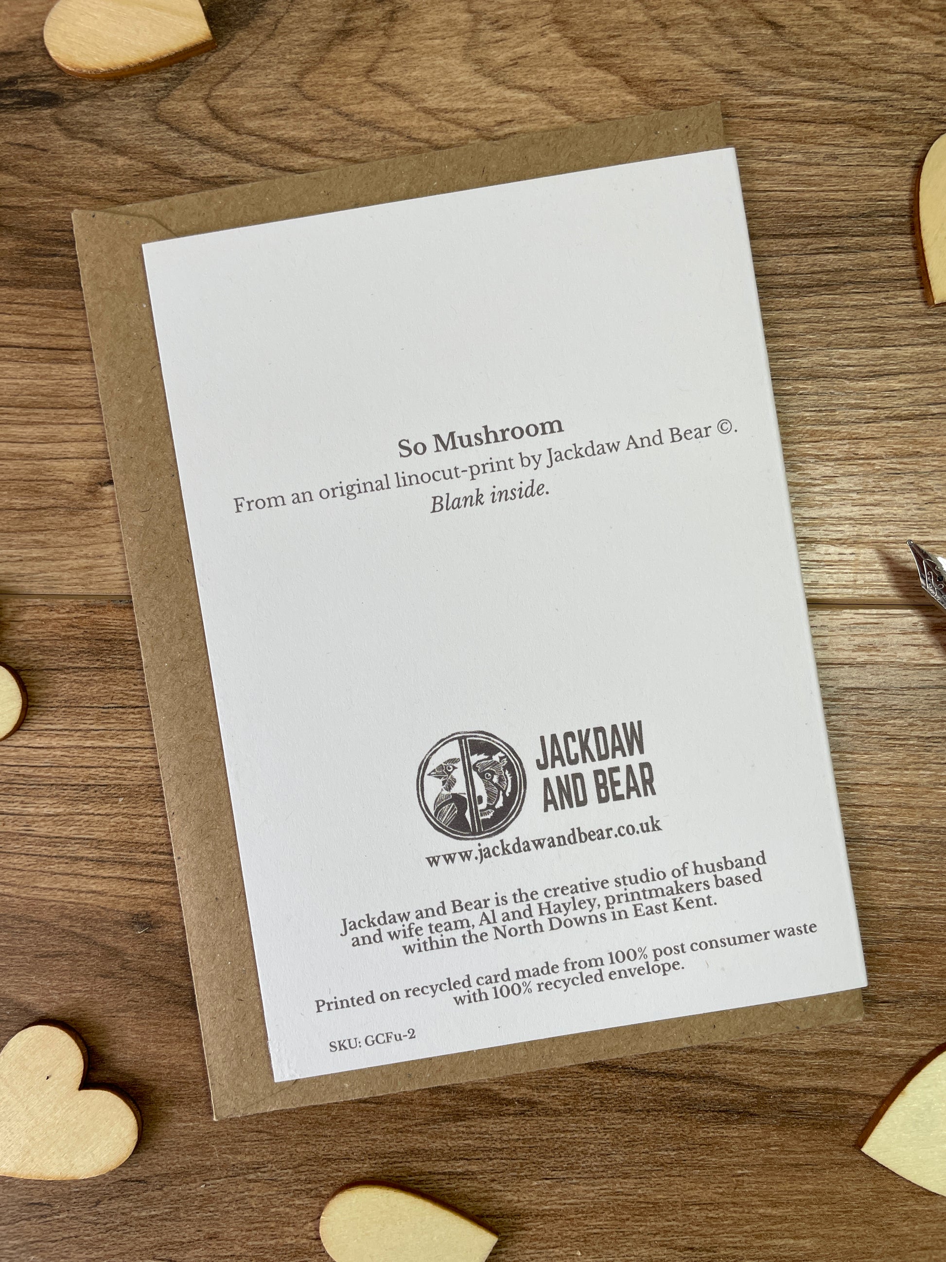 Printed in our Kent studio from our original linocut design on white A6 recycled card, paired with brown recycled Kraft envelope, it is left blank inside for your own message.